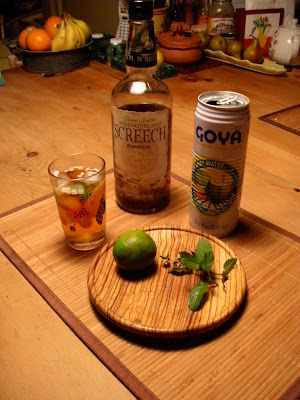So, the mint used in this drink - the one you see in the picture - is actually wild spearmint, which grows around the outdoor tub. We used to have tons of peppermint, too, but that seems to have disappeared (an almost unheard-of phenomenon with mint).